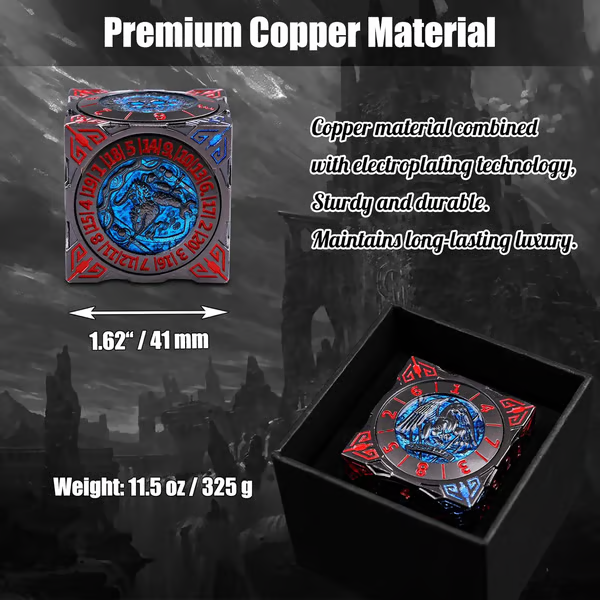 ★【Premium Copper Material】--Wunhunew spinner dice is made of copper material, combined with electroplating technology, presenting a variety of colors. Sturdy and durable, can maintain long-lasting luxury. When you own it, you will be amazed by its exquisiteness.