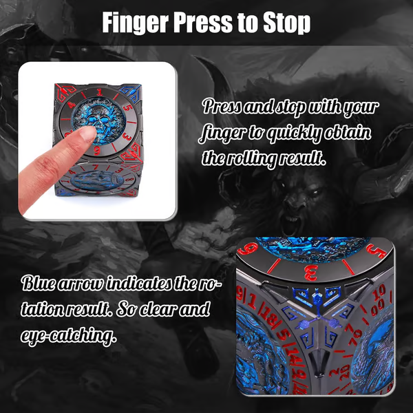 ★【Finger Press to Stop】--Wunhunew spinner dice are equipped with a gyroscope system inside, which rotates very smoothly. When in use, you can press and stop with your finger to quickly obtain the rolling result.