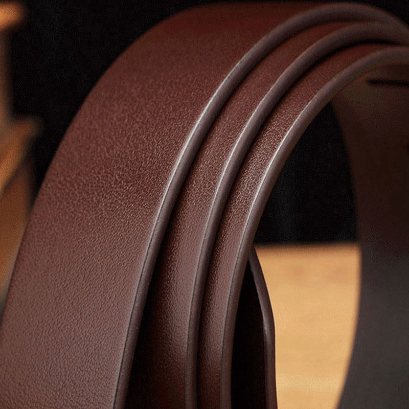 VERSTERKTE 4MM DIKTE VOOR STABILITEIT - Het 4MM dikke riemlichaam is ontworpen om vervorming na verloop van tijd te weerstaan. De versterkte structuur voegt gewicht en dichtheid toe zonder bulk, en zorgt voor een stevige grip rond je middel die zijn vorm behoudt bij regelmatig dragen. In combinatie met een geklede broek of jeans past deze riem naadloos bij je garderobe.