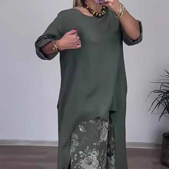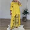 Package Include: 1* Women's Asymmetric Top and Printed Pants 2-Piece Set
