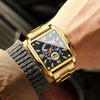 ROESTVRIJSTALEN HORLOGE: Fashion gouden vierkante kast, eenvoudig en stijlvol, de perfecte combinatie van vrije tijd en zaken. Het past perfect om je pols, is comfortabel om te dragen en de band is ademend en waterdicht.