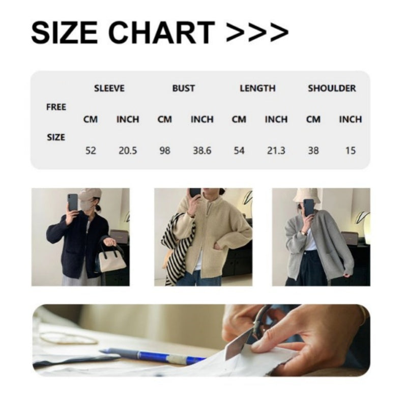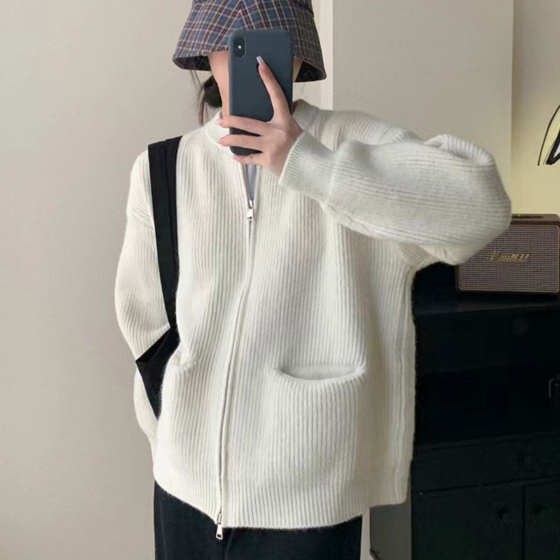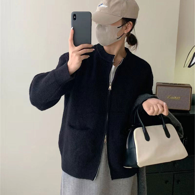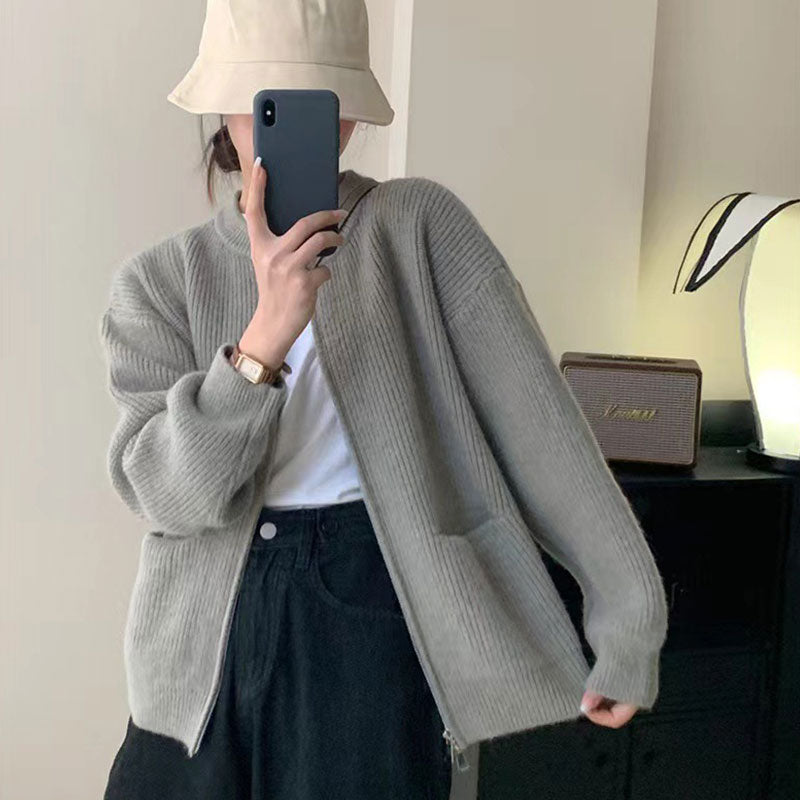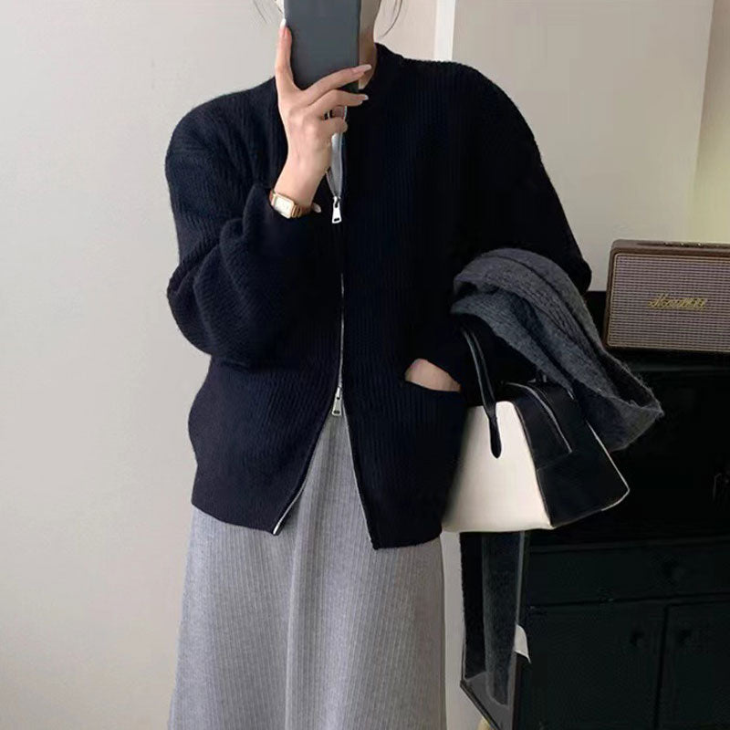 Pakket Inbegrepen: 1 * Gebreide damesjas met dubbele rits en ronde hals
