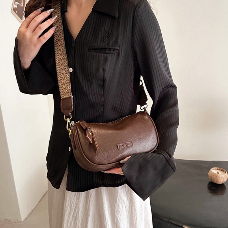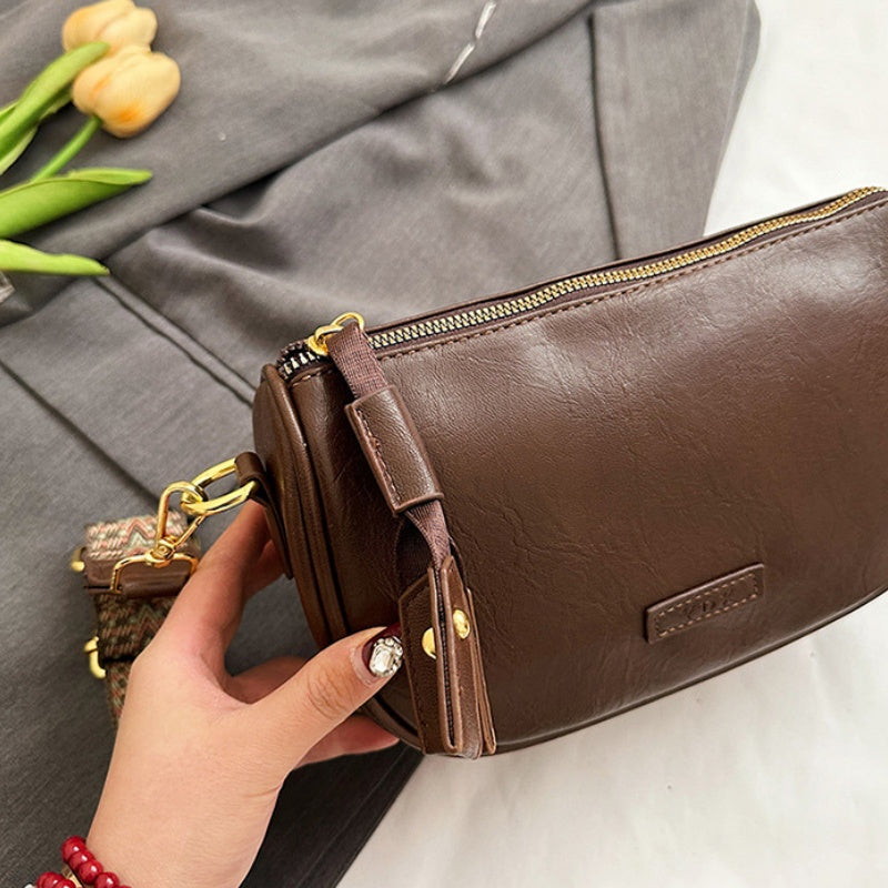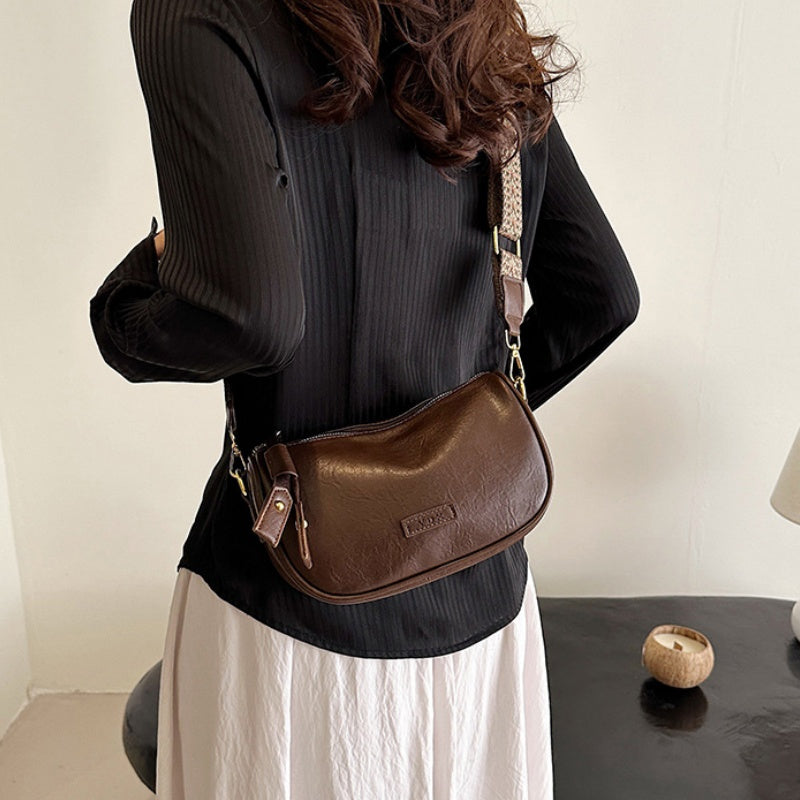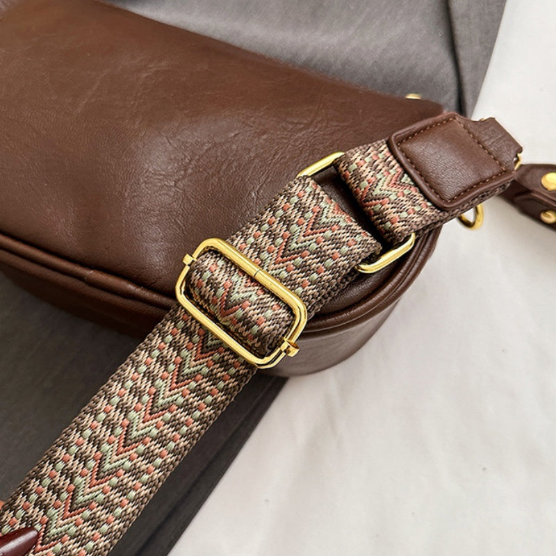 Retro PU Adjustable Wide-Strap Crossbody Bag