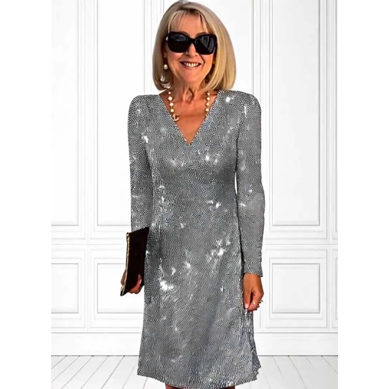 Inhoud verpakking: 1 * Sierlijke V-hals Lange Mouwen Glitter Paillettenjurk