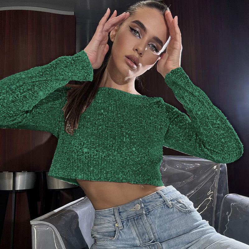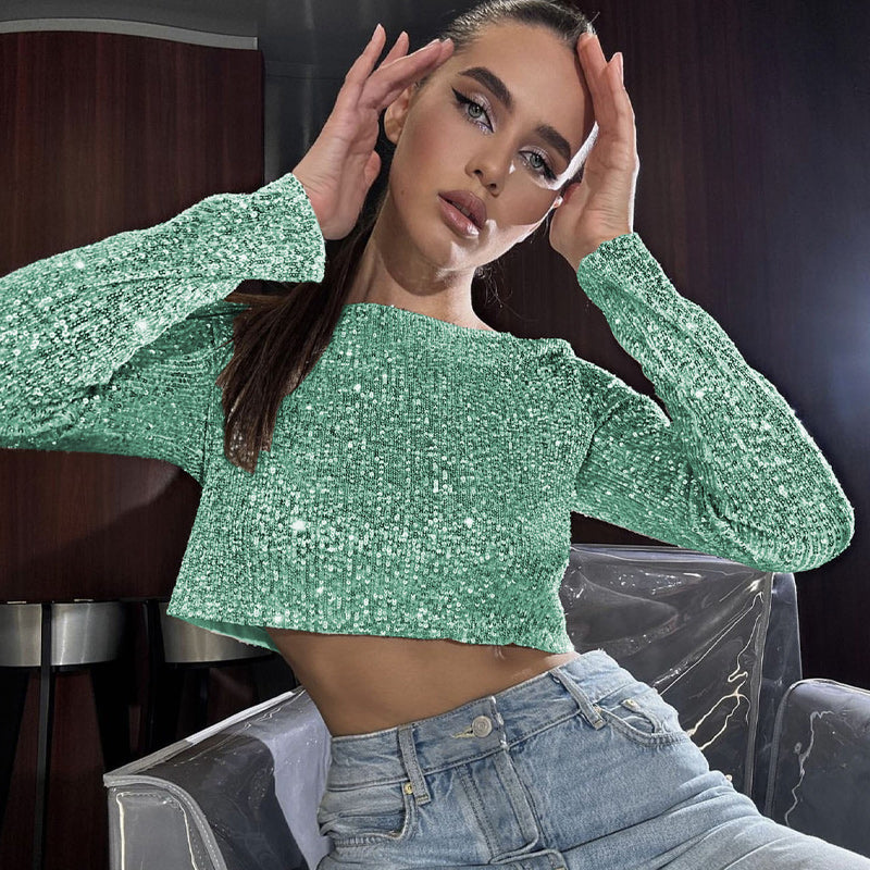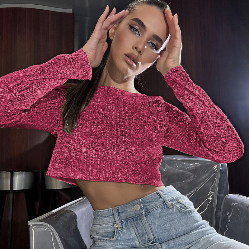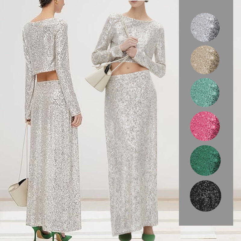 Pakket omvat: 1*Sequin Lange Mouw Top & Rok Set