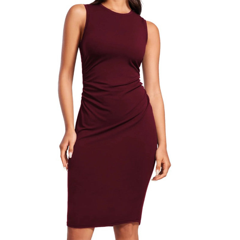 Mouwloze rekbare slanke geplooide tankjurk