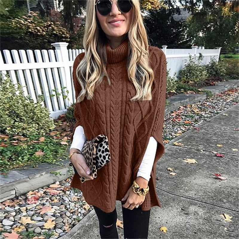 Women's Turtleneck Poncho Sweater with Cable Knit