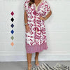 Printed Casual Dress With V-Neckline and Fringes on the Short Sleeves