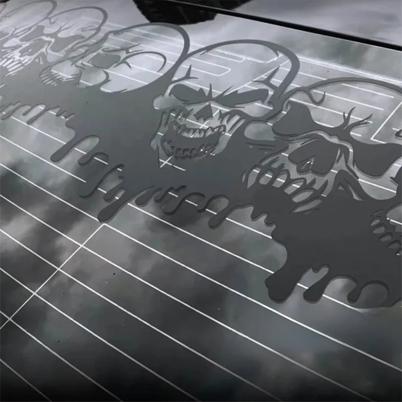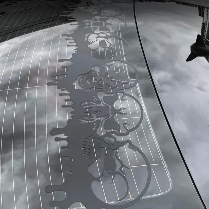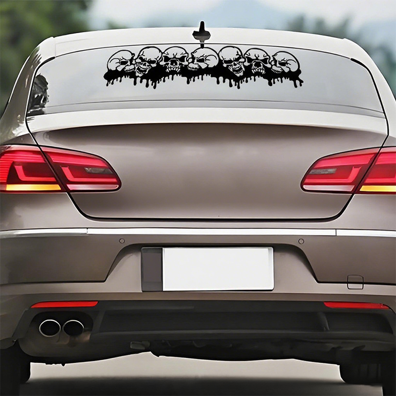 UNIQUE BLEEDING SKULL DESIGN – Striking skull pattern instantly adds a rebellious, edgy look to your car, making it stand out on the road.