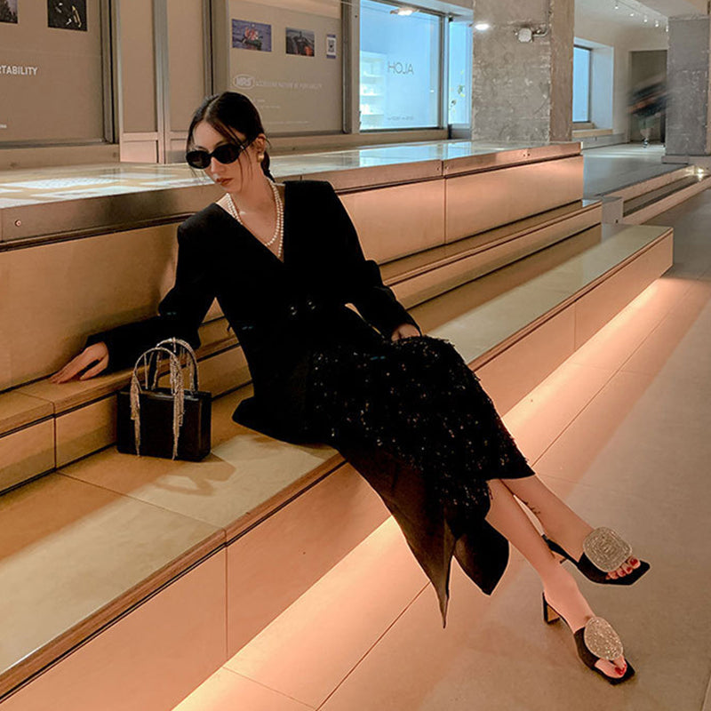 ELEGANT EMBELLISHMENT: The large geometric shape of rhinestone embellishment is the highlight of these sandals. It catches the light and adds a sparkling touch to your feet, making you stand out in any crowd.