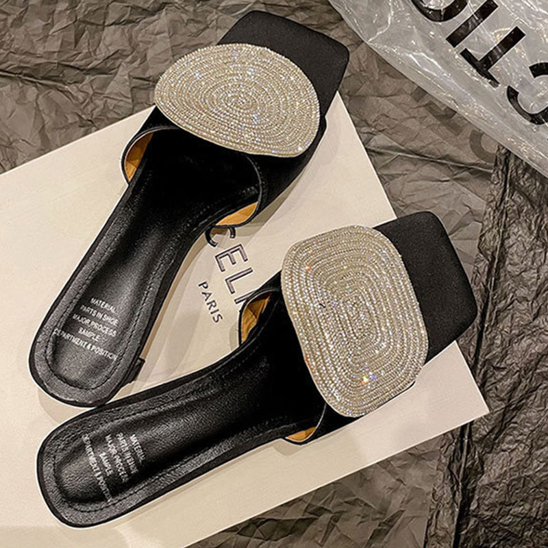 💖Limited Sale 50% OFF💖Women's Romantic Square-Toe Sandals with Geometric Rhinestone Design