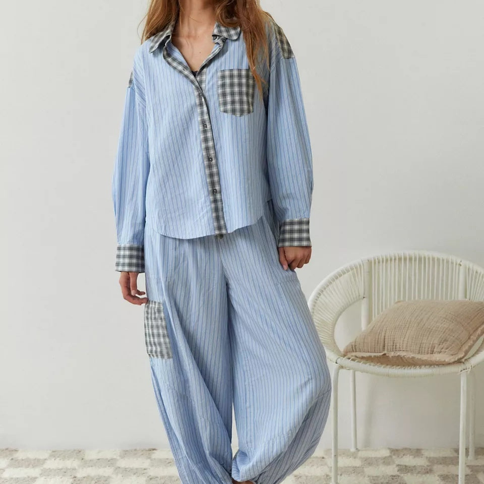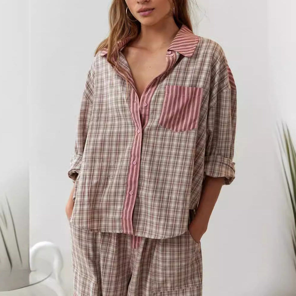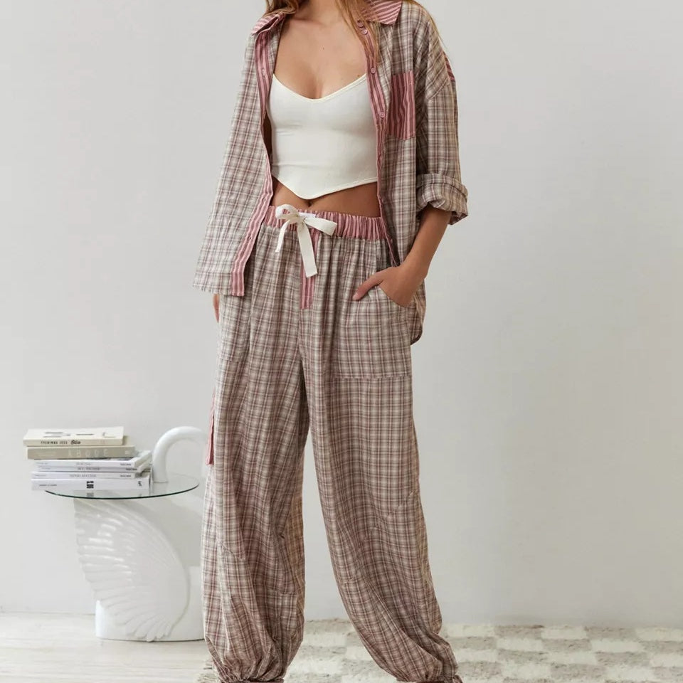 Women's Plaid Shirt & Pants 2-Piece Pajama Set